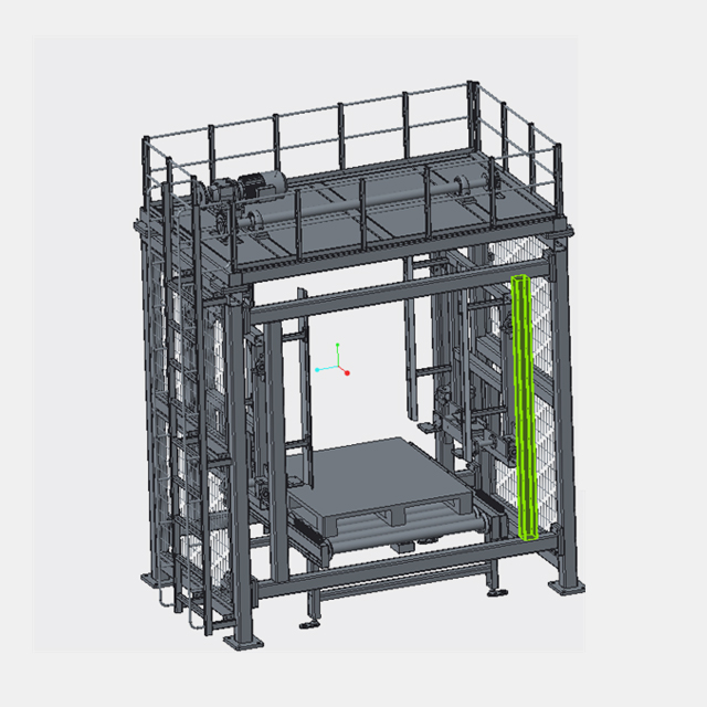 折疊盤機是用于空托盤的折疊裝置,目的是為了將空托盤堆疊起來,減少占地面積,通常用于自動化倉庫的空托盤出口處。首個托盤進入拆/疊盤機到位后,升降臺將托盤升至最高位,兩側撥叉伸出,升降臺下降,將托盤放至撥叉上。待下一托盤進入拆/疊盤機并定位后,升降臺將托盤連同撥叉上托盤升起一定距離(升降臺上升至中間位),兩側撥叉收回,升降臺再上升至最高位,兩側撥叉伸出,升降臺下降至最低位,將托盤放至撥叉上,完成第二個托盤的碼盤