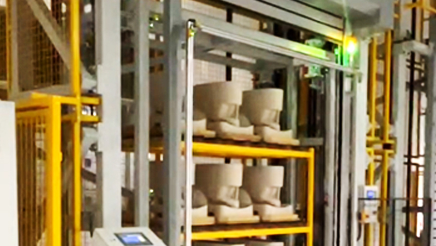 本項(xiàng)目由三臺(tái)套提升機(jī)(全套設(shè)備由支撐框架、鋼絲繩及曳引電機(jī)、載貨臺(tái)及貨叉等組成),提升機(jī)設(shè)備系統(tǒng)實(shí)現(xiàn)坯車樓層之間的自動(dòng)轉(zhuǎn)運(yùn)。減少95%人工成本,提高300%的工作效率,綜合生產(chǎn)成本降低20%以上。滿足7*24h工作時(shí)間,降低了勞動(dòng)安全風(fēng)險(xiǎn)。
